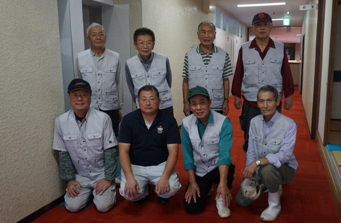 横芝光町 グループホーム光 7カ所の男女トイレ並びに換気扇の掃除を行いました。7名の参加、リーダー片山義雄氏、今回10年ぶりに大木薫氏が参加してくれました。越川満さん折笠英夫さん、体調不良のため不参加、大木さんの世代(昭和30年代生まれ)の後継者育成が今後の課題です。